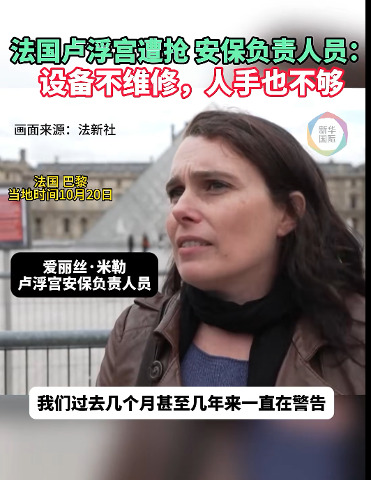 10月21日,据新华国际消息,法国司法部长达尔马宁20日表示,卢浮宫在安保方面存在漏洞,让抢劫者乘虚而入。据卢浮宫安保人员爱丽丝·米勒透露,卢浮宫技术设备过时、维修一拖再拖,过去十年削减了190个安保和监控岗位。