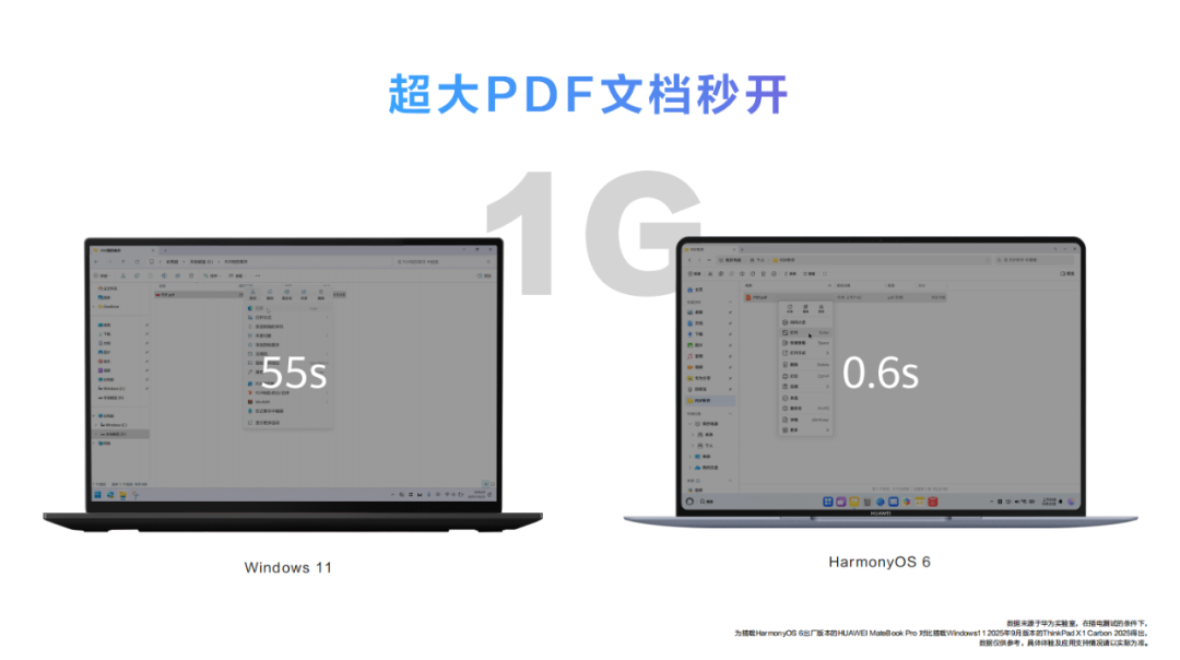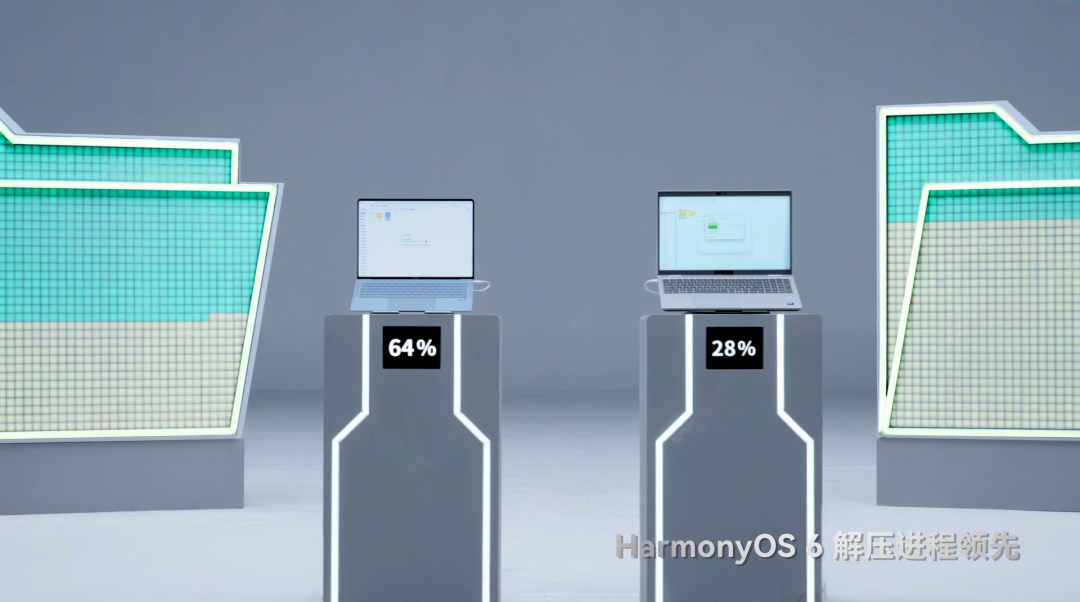 本轮参与测试的是搭载鸿蒙6的HUAWEI MateBook Pro和搭载Windows 11的旗舰机型PC,两台电脑均保持插电状态,解压缩同一个200G大小的压缩包。