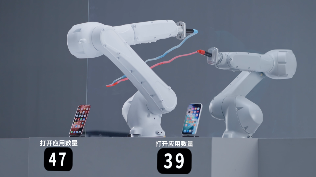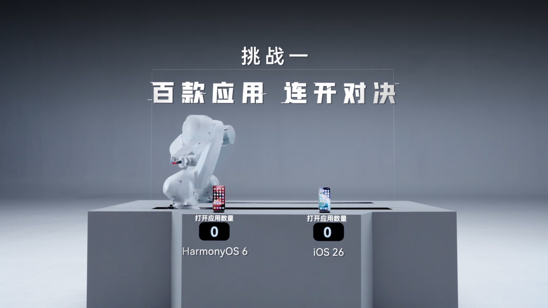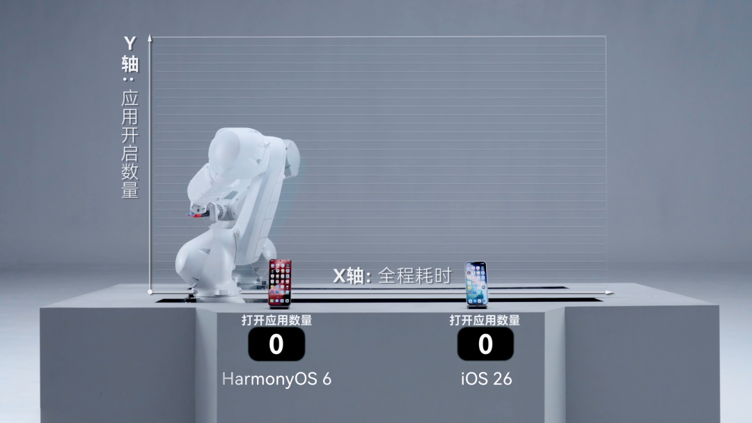 随着机械臂绘制的轨迹差距越来越大,最终鸿蒙6一鼓作气完成100个App冷启动到加载的操作;而同等时间内,iOS仅打开了78个APP。