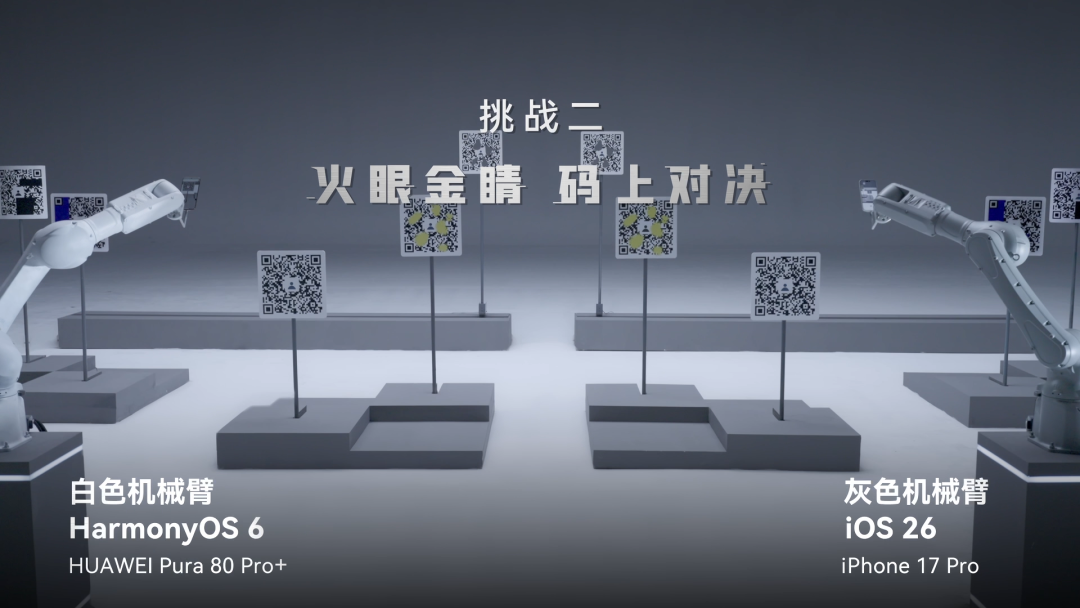 为了get答案,我们设置了正常、涂抹、反光、弯曲、破损且移动5个不同难度的扫码挑战。本轮参与测试的两台设备依然是搭载鸿蒙6的华为Pura 80 Pro+,以及搭载iOS 26的iPhone 17 Pro,在同一网络环境、同样的定点距离下,两台手机将逐一扫描每个二维码,谁是火眼金睛、谁又只能干瞪眼?