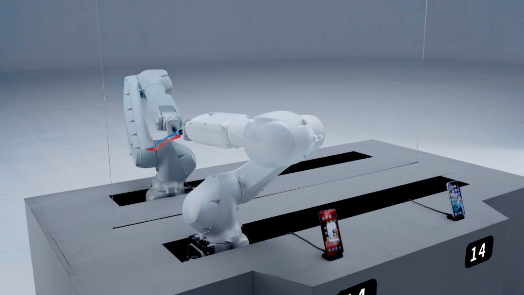 为进一步放大流畅度差异的感知,我们加入了同步验证环节,通过机械臂在面板上绘制轨迹线条,来直观呈现前台操作的流畅稳定性。