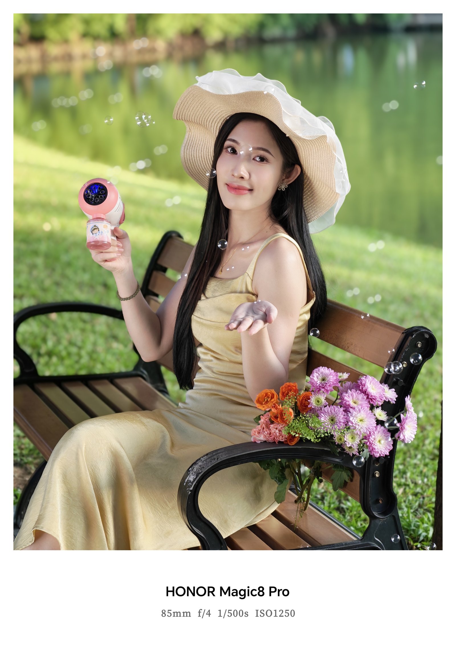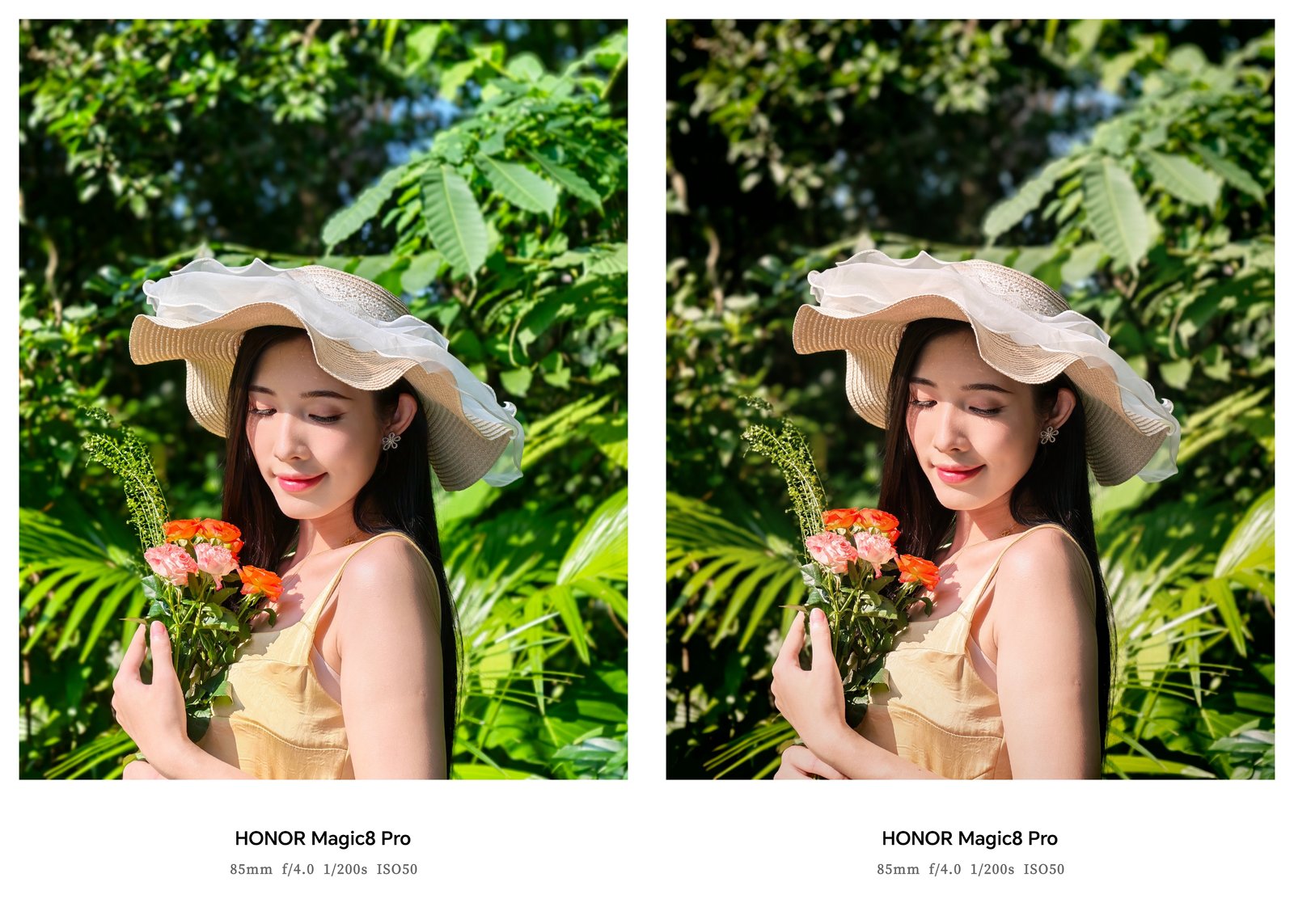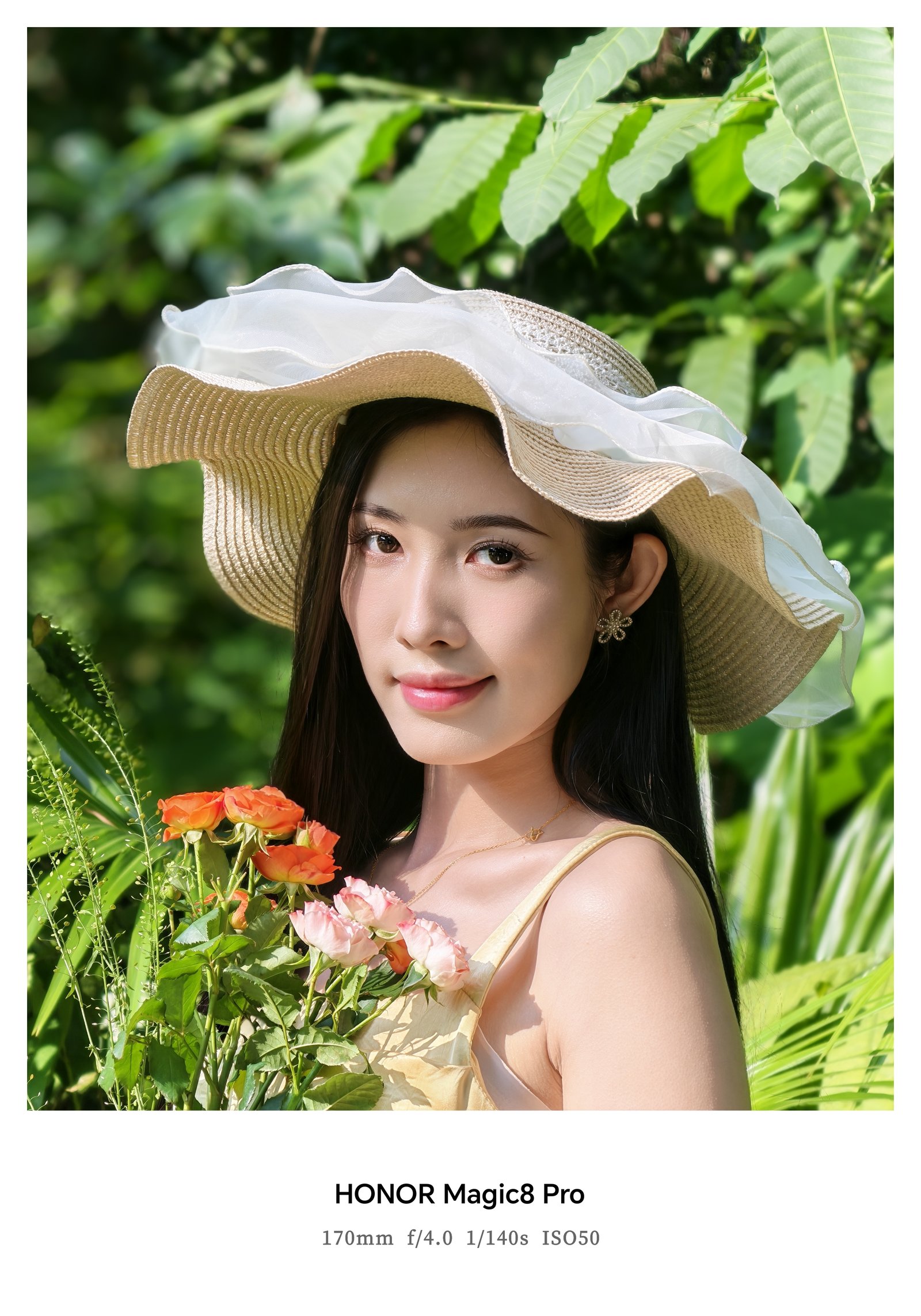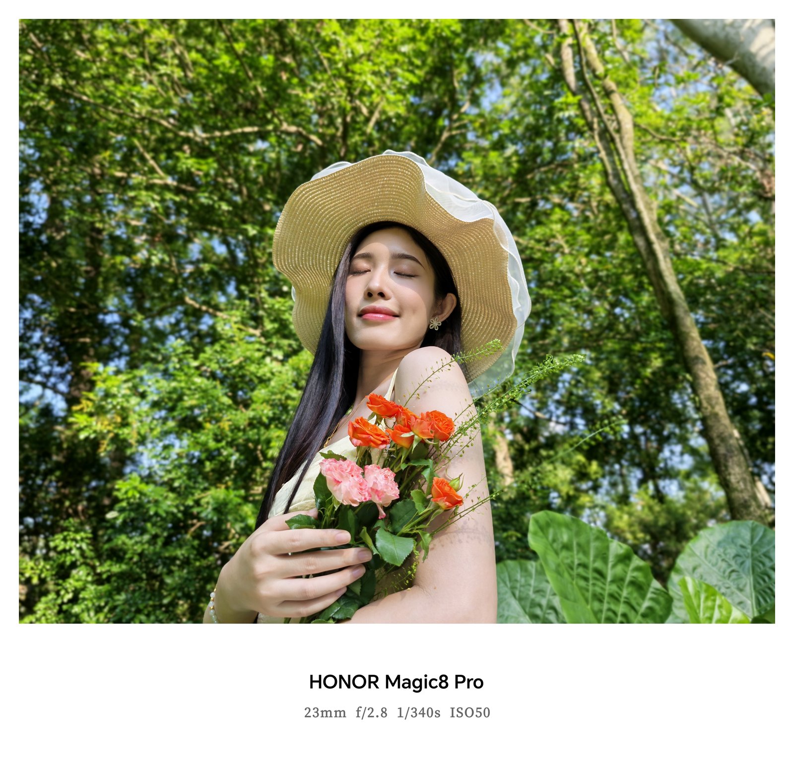 从拍摄的样张看,荣耀Magic8Pro依托于自研的AI人像大模型,可以智能识别环境中的光线,并且对人物的肤质、光影细节进行毫秒级优化,呈现更立体的五官,色彩也更讨喜。