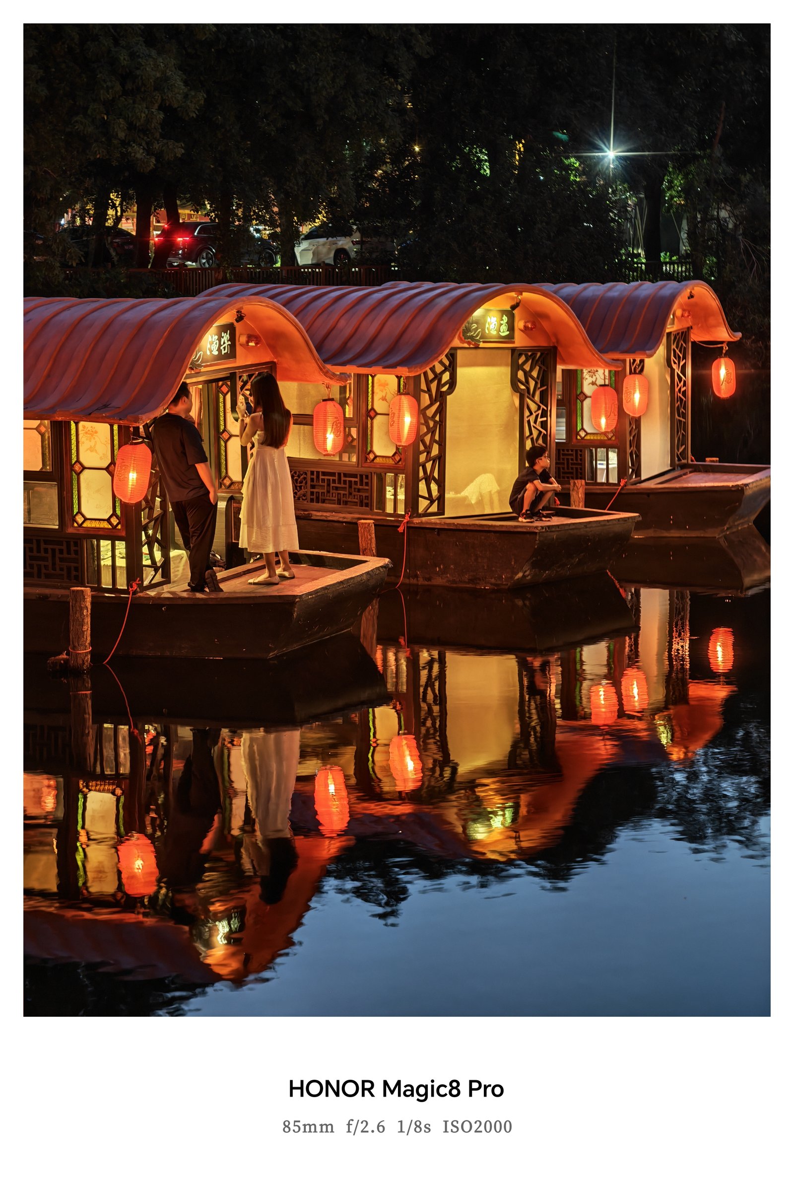 人像方面,荣耀Magic8Pro实现从广角到长焦的全焦段人像优化,我们可以随时调用主长广三颗镜头进行人像拍摄,并且无惧夜晚的暗光环境,随时随地,清晰出片。