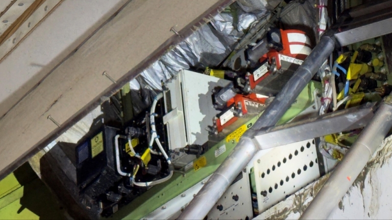 图中的橙色部件为位于失事货机残骸中的“黑匣子”。(图/香港特区政府运输及物流局)