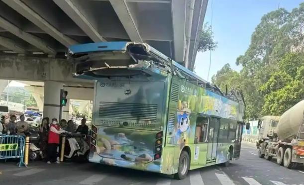 10月26日,广东深圳一辆双层巴士顶部被“削顶”一事,引发关注。网络视频显示,一处高架桥下,一辆双层巴士顶部遭挤压变形破损严重,车顶已发生明显的错位,现场玻璃碎片散落一地。