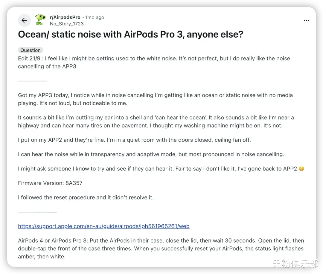 不过在过去的一个月,AirPods Pro 3 没少在社交平台上被「点名」。