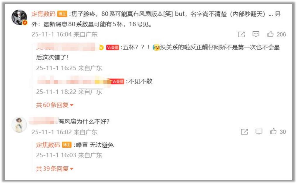 另外在与网友互动过程中透露,华为Mate80系列将在18号见。同时解释有风扇为什么不好?回复表示噪音无法避免。