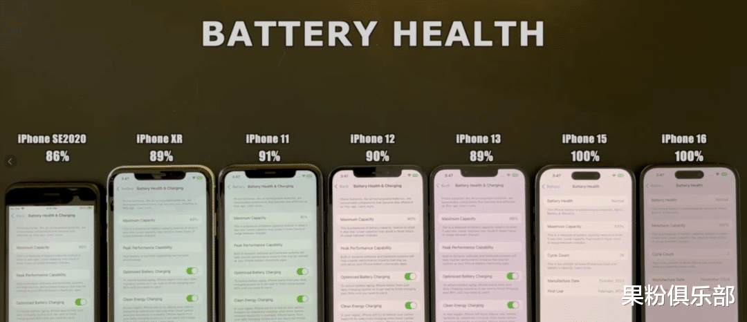 本次测试流程也与往常一致,所测 iPhone 的电池健康基本都保持在 90% 左右。