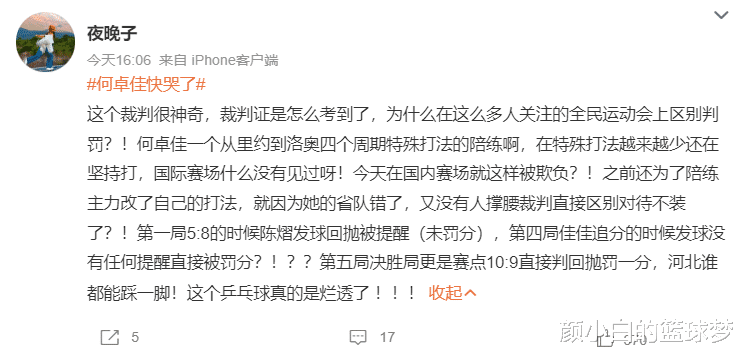 太多的球迷对这场比赛感到不满,认为这场比赛失去了公允,就算要罚分也应该以回放为主,而且裁判赛后也没有对此进行解释,何卓佳这场比赛输的太憋屈。