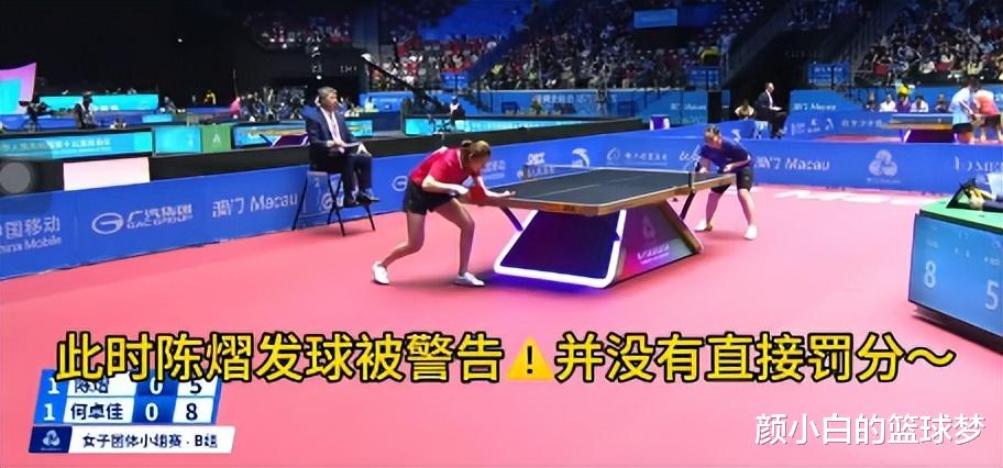 这场比赛裁判的吹罚多次出现争议,陈熠也有发球违例但只是警告,而何卓佳发球违例两次就是直接被罚分了,关键是裁判都没有看回放。