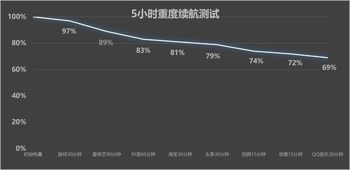 在这项测试中,我们选取了半小时游戏,90分钟爱奇艺观影、一小时刷抖音,以及拍照、摄影、听音乐等场景,来模拟用户的日常使用环境。实测结果如下: