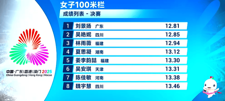 北京时间11月19日晚,第15届全运会田径项目的比赛继续进行。在刚结束的女子100米栏决赛中,来自四川的吴艳妮尽管跑出了12秒85的赛季最佳成绩,但她却在最后时刻被广东选手刘景扬反超,以0.04秒之差屈居亚军。