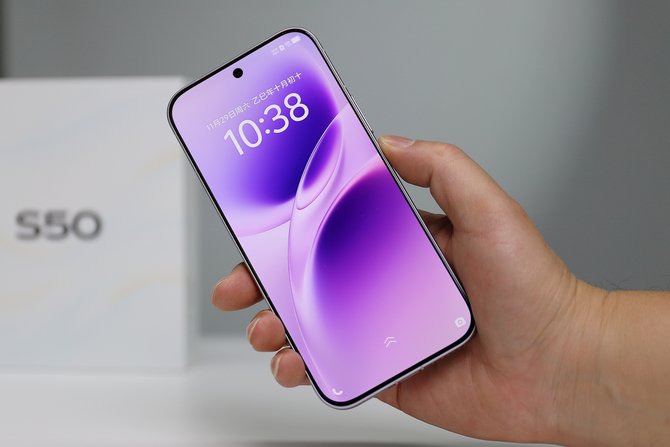 配色方面更是颜值天花板。全新推出的「告白」配色堪称惊喜,不同角度下,S形光波会在背板上静静滑动,搭配独特的光影效果,干净又灵动;「灵感紫」裹挟着晚霞般的梦幻气息,「悠悠蓝」满是清爽活力,而「深空黑」则延续了沉稳内敛的经典质感,轻松适配不同场景与穿搭风格。机身尺寸也考虑得十分周全,6.31英寸的S50Promini适合偏爱小屏手感的用户,6.59英寸的标准版则能带来更沉浸的视觉体验,无论单手操作还是双手握持都很舒适。