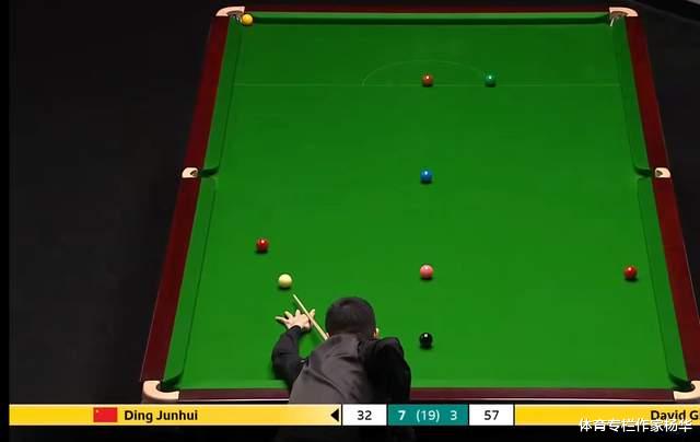 第一阶段丁俊晖7-2领先吉尔伯特,第二阶段风云突变,吉尔伯特一上来手感不错拿下一局,接下来又是57-1取得领先,这个时候虽然给了丁俊晖上手的机会,看上去也很难清台。没想到丁俊晖追到32-57没有角度继续进攻的情况下推进中袋红球。