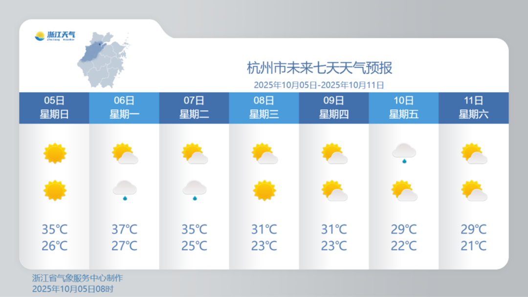 今明两天,我省高温的强度、持续时间、偏晚程度均同期少见甚至破纪录。省会杭州昨天最高气温36.0℃,打破历史最晚高温日纪录。不过,这个最新纪录,今明天还将继续被刷新。