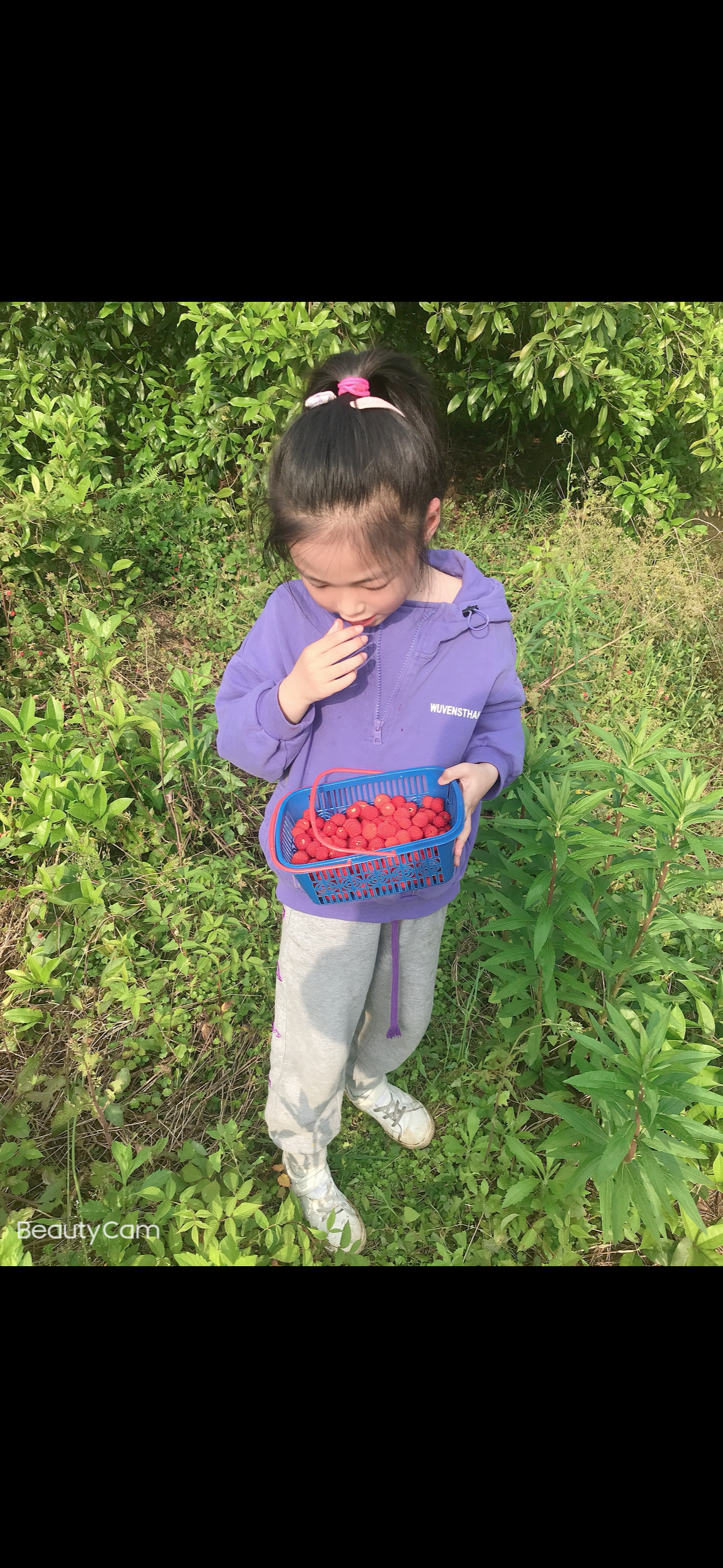 照片上,我穿着紫色卫衣、灰色长裤,手里捧着一篮子的“阿公公”——本地草莓,它们犹如一颗颗红彤彤的宝石。照片中的我,胖嘟嘟的脸上挂满了笑容,一副心满意足的样子。