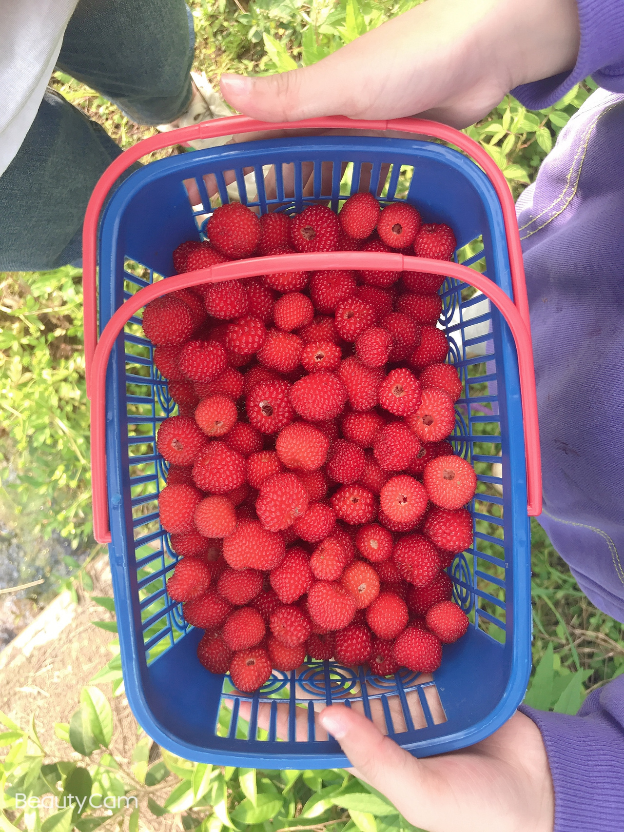 我们采摘小分队也陆续走进了树林里。山上的“阿公公”可真多呀!远远望去,“阿公公”像红宝石,在阳光下闪闪发光;走近一看,发现它可真神奇:它是由无数颗迷你小浆果组成的,每一颗都鼓鼓的。正当我看得如痴如醉时,爸爸提议道:“不如我们来一场比赛吧,看谁采得最多。”看着眼前的“阿公公”,我心中立即涌起一股不服输的劲儿,开始采起来。我小心翼翼地摘着,确保它们完好无损。碰到有刺的地方,我会用随身带的小木棍拨开枝叶,就能轻松地采到“阿公公”了,看来“神器”算是带对啦!