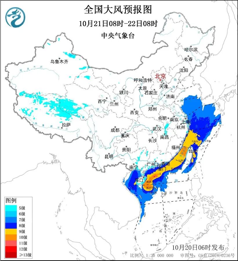 大风预报:受冷空气和“风神”的共同影响,20日14时至21日14时——