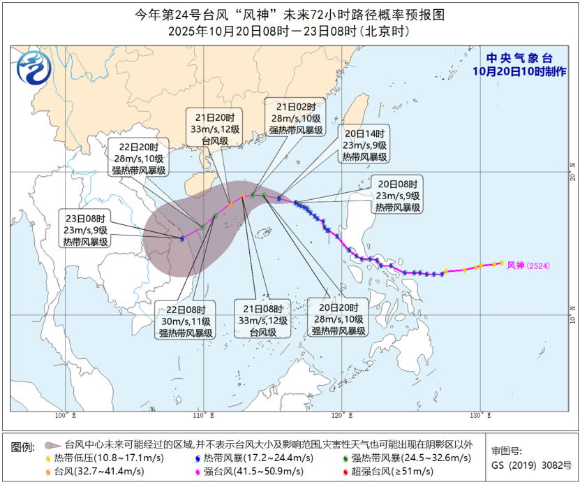 预计“风神”将以每小时20—25公里的速度向西偏北方向移动,强度逐渐增强,最强可达强热带风暴级或台风级(30—35米/秒,11—12级);21日白天受南下冷空气影响,将在南海中北部海面转向西南方向移动,趋向越南中部沿海,强度逐渐减弱。