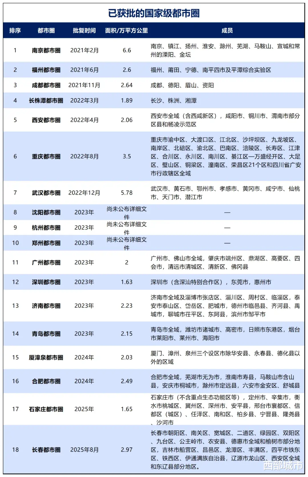 在长春之前,全国已批复了17个“国家级都市圈”。