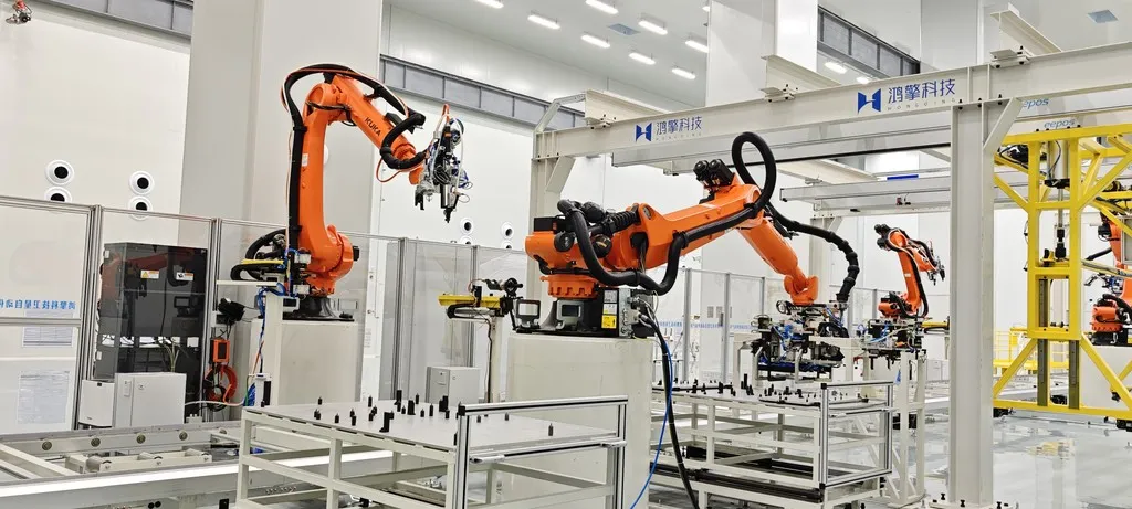 10月22日,蓝箭鸿擎(雄安)空间科技有限公司(以下简称“雄安鸿擎科技”)卫星智能制造中试基地内,首颗“雄安造”卫星——“雄安一号”(鸿鹄技术验证星)完成生产下线。图为卫星智能制造中试基地内的生产线。河北日报记者曹铮摄