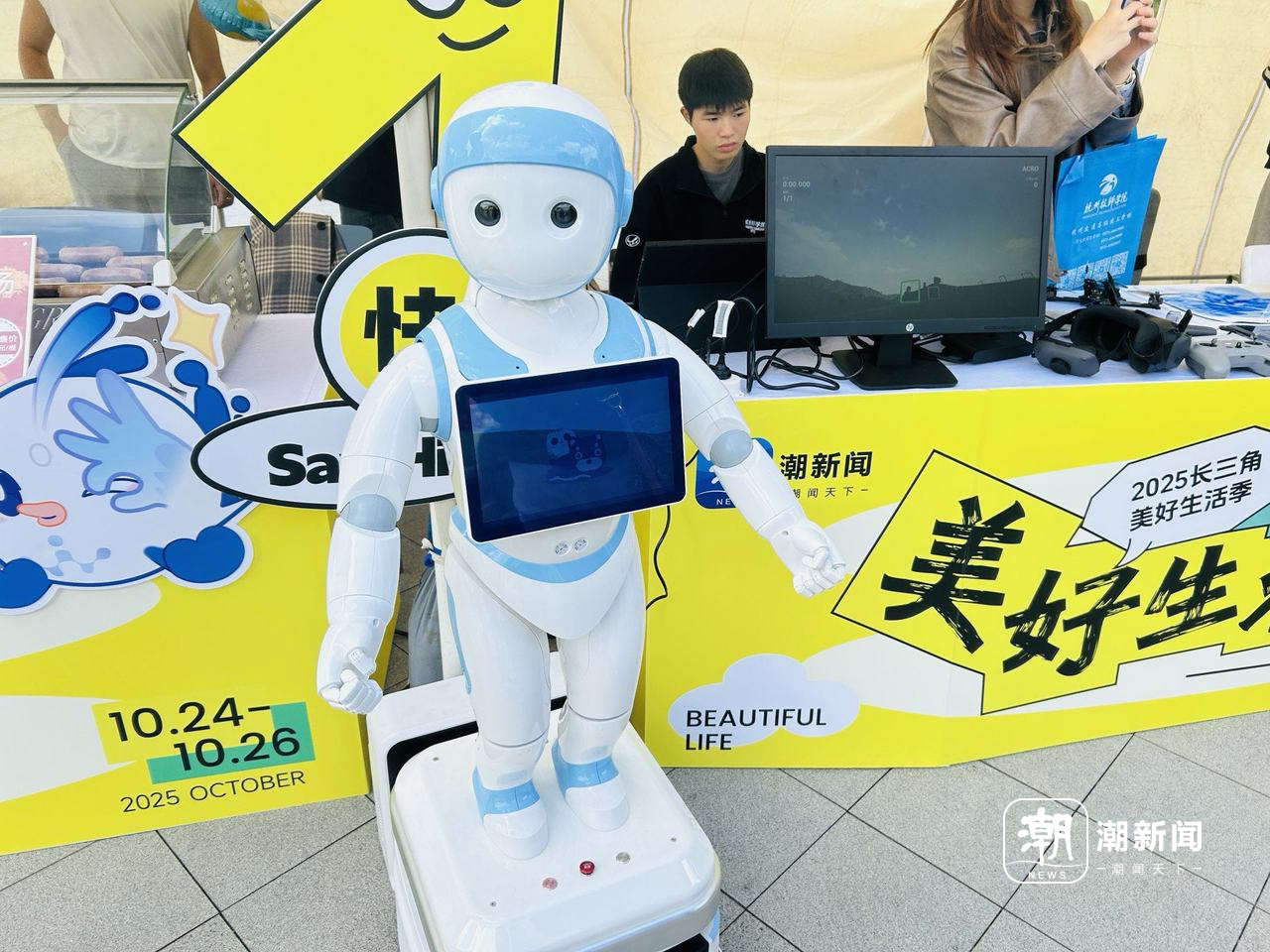 10月24~26日,2025潮新闻长三角美好生活季在杭州拱墅运河体育公园举行。24日上午,杭州技师学院的展位前,就吸引了众多围观互动的市民,人气可见一斑。