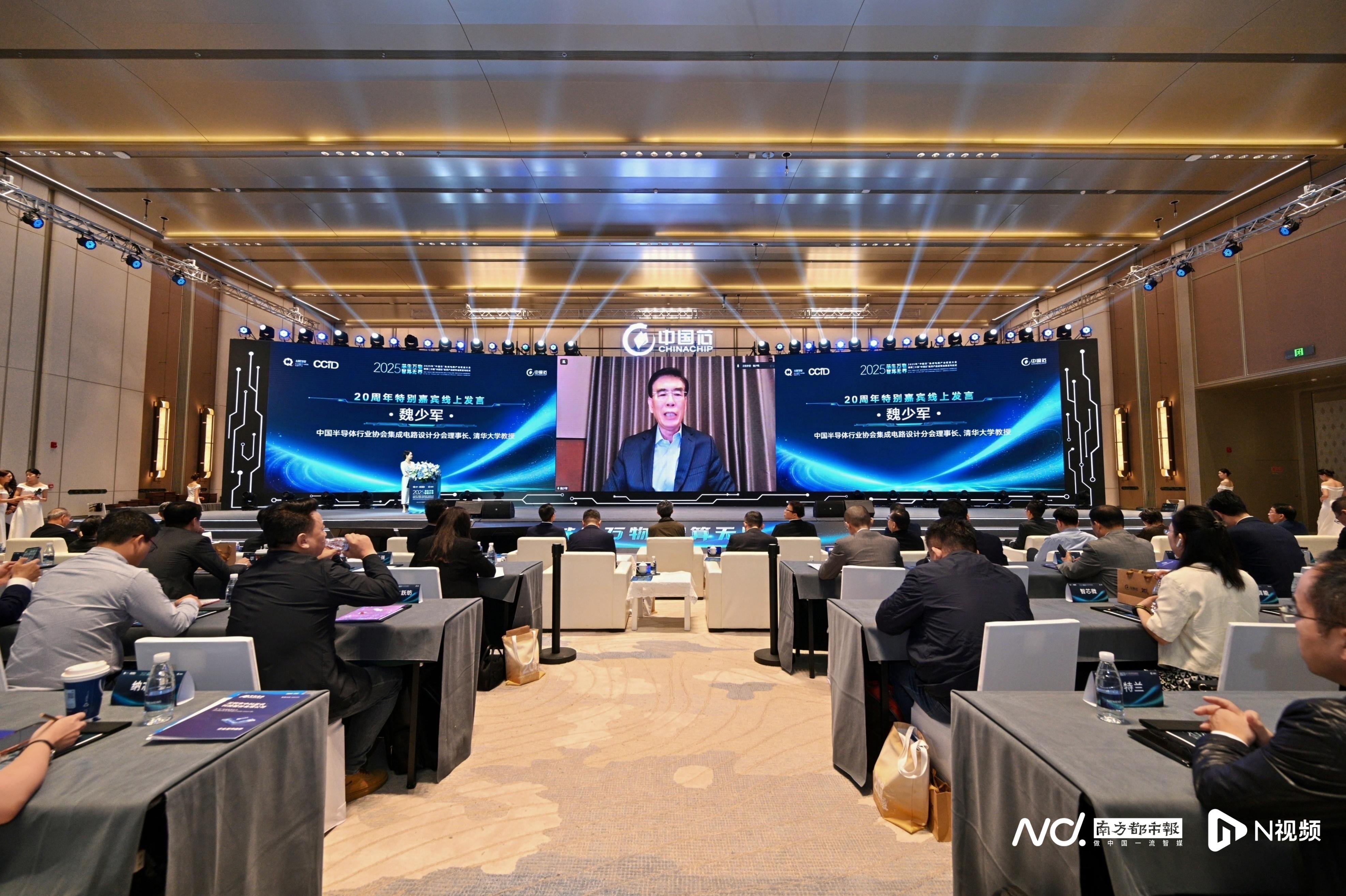 随后,中国半导体行业协会集成电路设计分会理事长、清华大学教授魏少军作“20周年特别嘉宾线上发言”。他指出,经过20年发展,中国集成电路产业有了翻天覆地的变化,产业规模从2005年的150亿元成长到2024年的6460亿元,国产产品在全球市场的占有率也从2005年的0.81%提升至2024年的14.5%。这些增长的背后,不仅有重大产业政策的支撑,也是众多企业奋斗的结果,正推动自研产品水平不断提升。