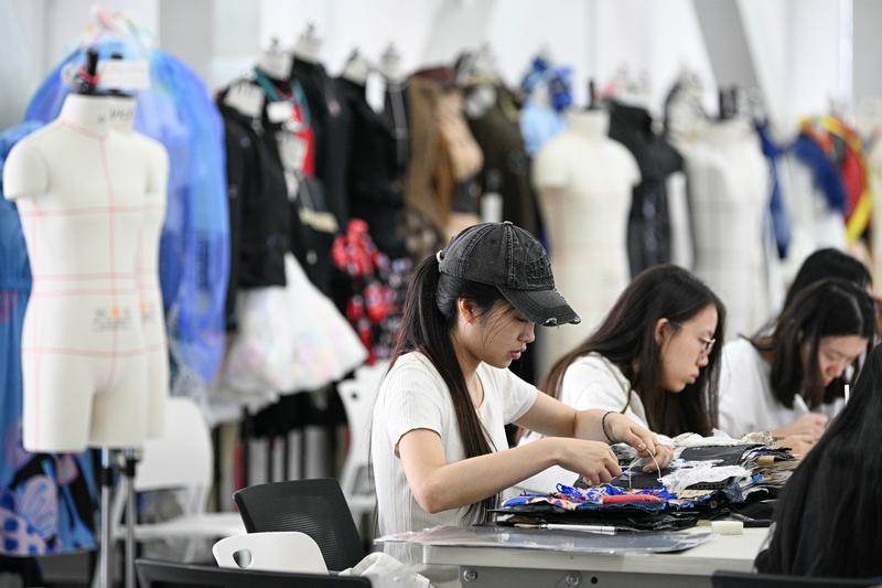 在海南自贸港重点园区——陵水黎安国际教育创新试验区,中央民族大学海南国际学院的学生在上服装课。新华社图