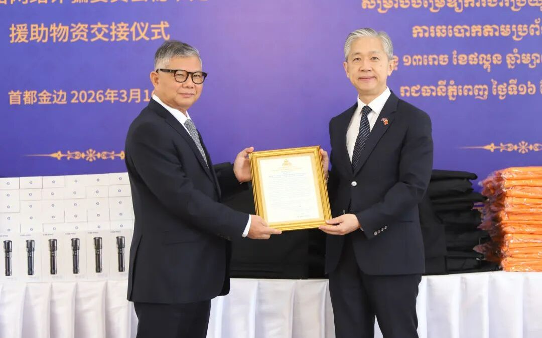 新京报讯据中国驻柬埔寨大使馆消息,中国公安部向柬埔寨打击网络诈骗委员会秘书处援助物资交接仪式3月16日在金边举行。柬国务大臣柴西纳列、中国驻柬大使汪文斌出席并致辞。