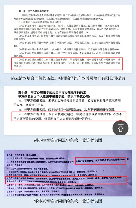 三年前,施云清在福州锦华汽车驾驶员培训有限公司(以下简称“锦华驾校”)学车,交了2900元报名费,后因异地求学申请退费,却遭到了驾校的百般拖延——“报名时驾校态度很好,退费就翻脸。驾校还搬出合同条款,打算分文不退。”锦华驾校相关负责人直言:“报名超2年不予退费,福州驾校都是这样的行规。”