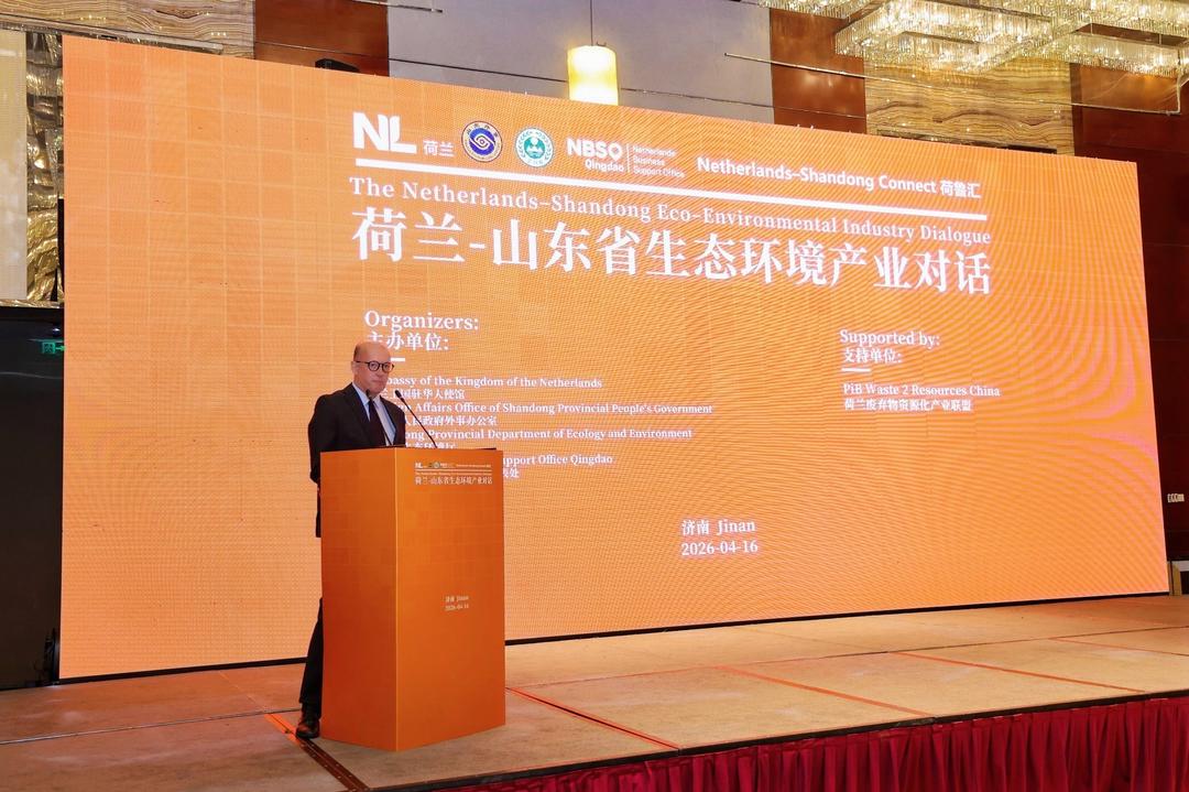 4月16日,由荷兰驻华使馆、省政府外办、省生态环境厅、荷兰贸促会青岛代表处联合主办的“荷鲁汇”荷兰—山东省生态环境产业对话在济南成功举行。本次活动聚焦循环经济、废弃物资源化、水管理与环保技术,标志着山东与荷兰在绿色低碳与可持续发展领域的合作迈向新的高度,为产业合作周注入了坚实的“生态底色”。