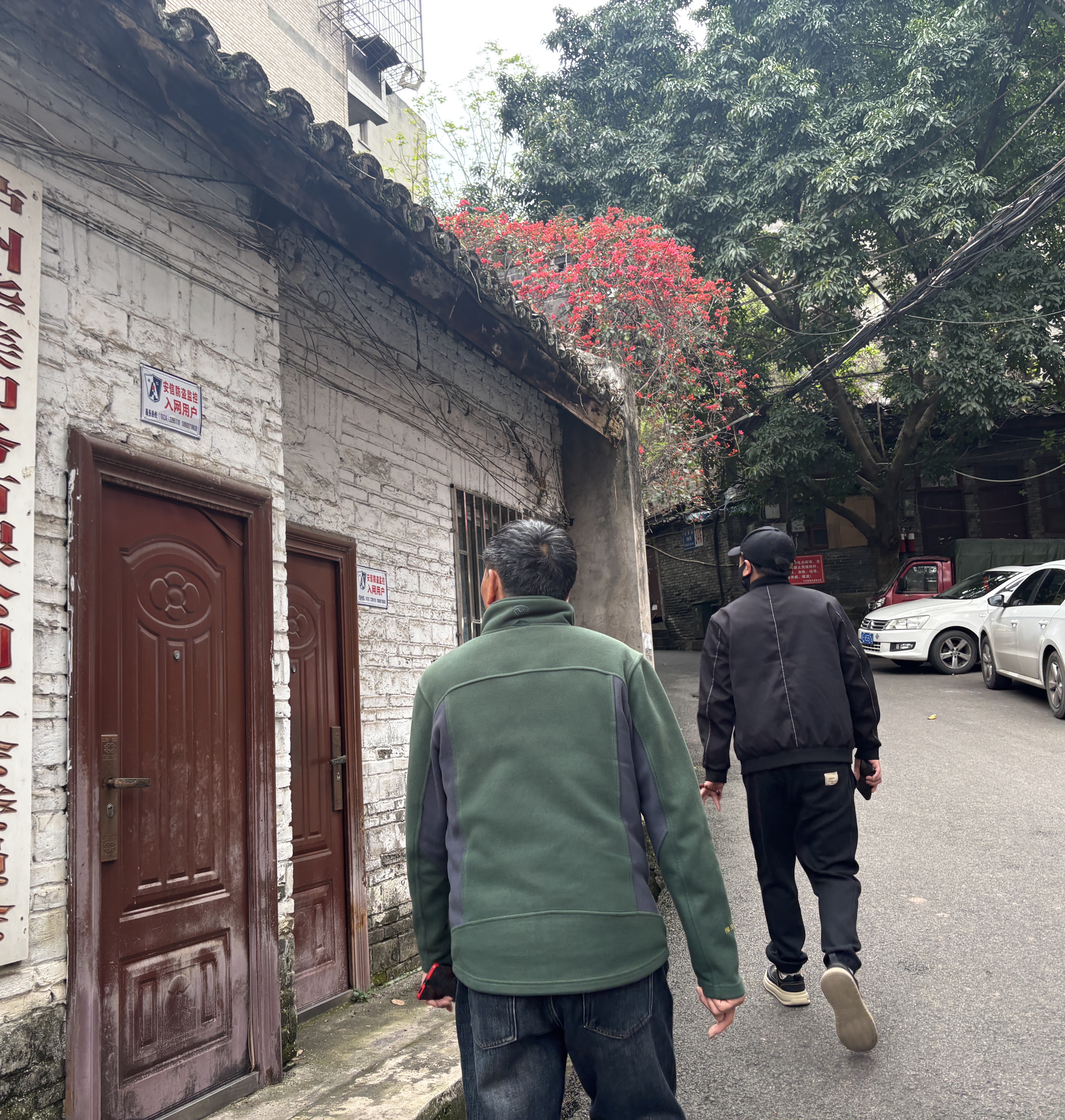 黄平(右)和爸爸到曾经租住的地方。新京报记者左琳摄