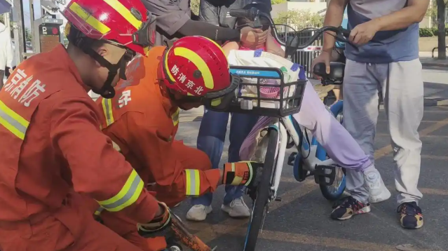 带娃骑共享单车的场景在生活中并不少见:在北京街头,经常看到有家长一手抱着孩子一手把着方向,有的将孩子放进车筐,还有家长购买“重量轻”的便携座板用在共享单车上。