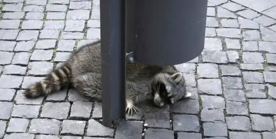 除了刨垃圾桶顺走垃圾桶盖这种高智商行为,它们还爱上了欧洲人喜欢的红酒和啤酒,它们甚至学会了打碎瓶子后畅饮。在德国部分街头,时不时就会出现一只“宿醉浣熊”,叫也叫不醒,赶也赶不走。