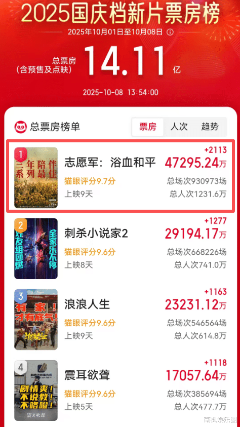 而票房冠军,果不其然是黄金档期最拿手的主旋律大片——