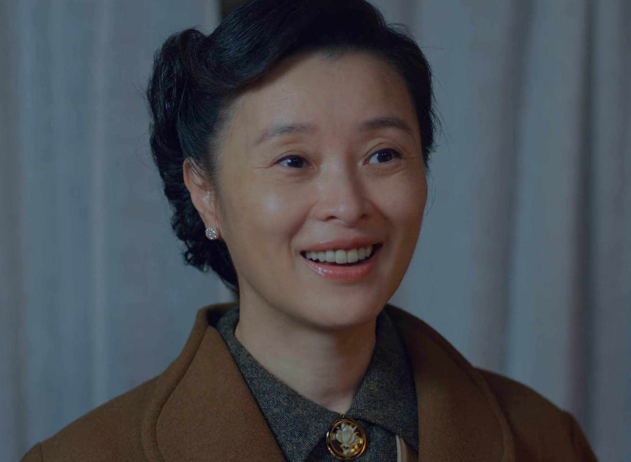 细看她剧中的造型,相较她在其他的影视作品中算是华贵了,短发显得干练利落,大衣衬得贵气逼人。