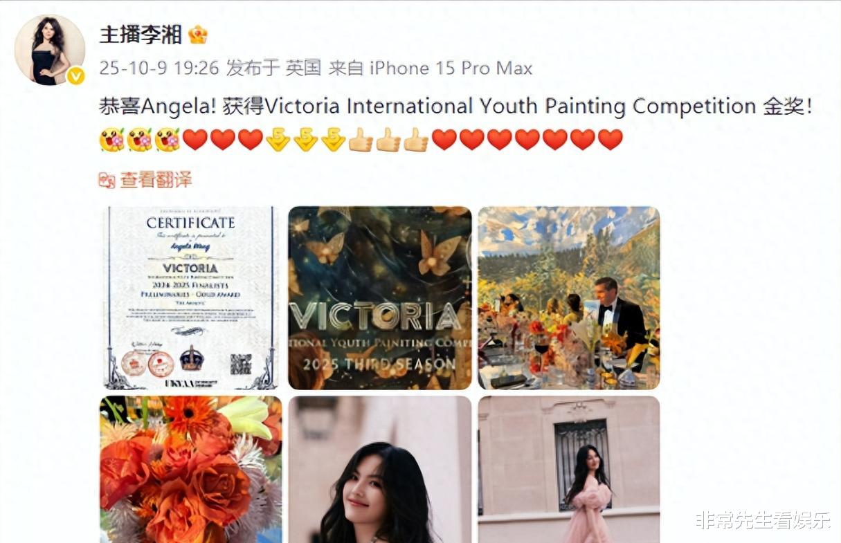 10月9日,两人几乎同时在微博发文,恭喜女儿王诗龄获得“Victoria International Youth Painting Competition”金奖。