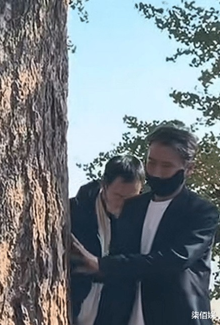 李乃文和辛柏青都是黑白穿搭,找不出一点明亮的色彩,看起来很严肃,就连俩人神情都一模一样。
