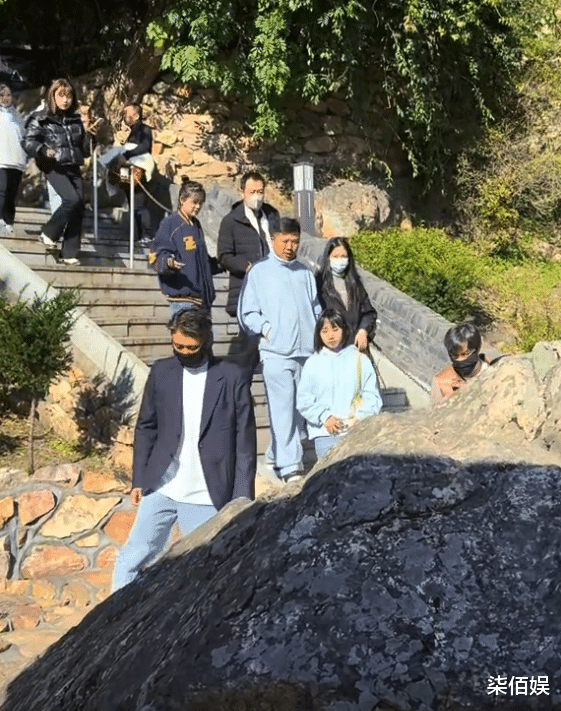 辛柏青在为亡妻朱媛媛祈福后在工作人员的陪伴下缓缓走下山,穿的要比李乃文厚很多,感觉身体有些虚弱。