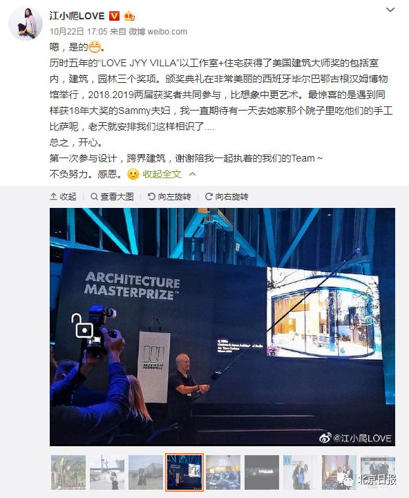 采访中,江一燕还回应了之前的建筑奖争议事件。她坦诚道:“这源于一场误会,但自己确实处理不当,特别是因为自己错误的一念,付出了特别大的代价。”