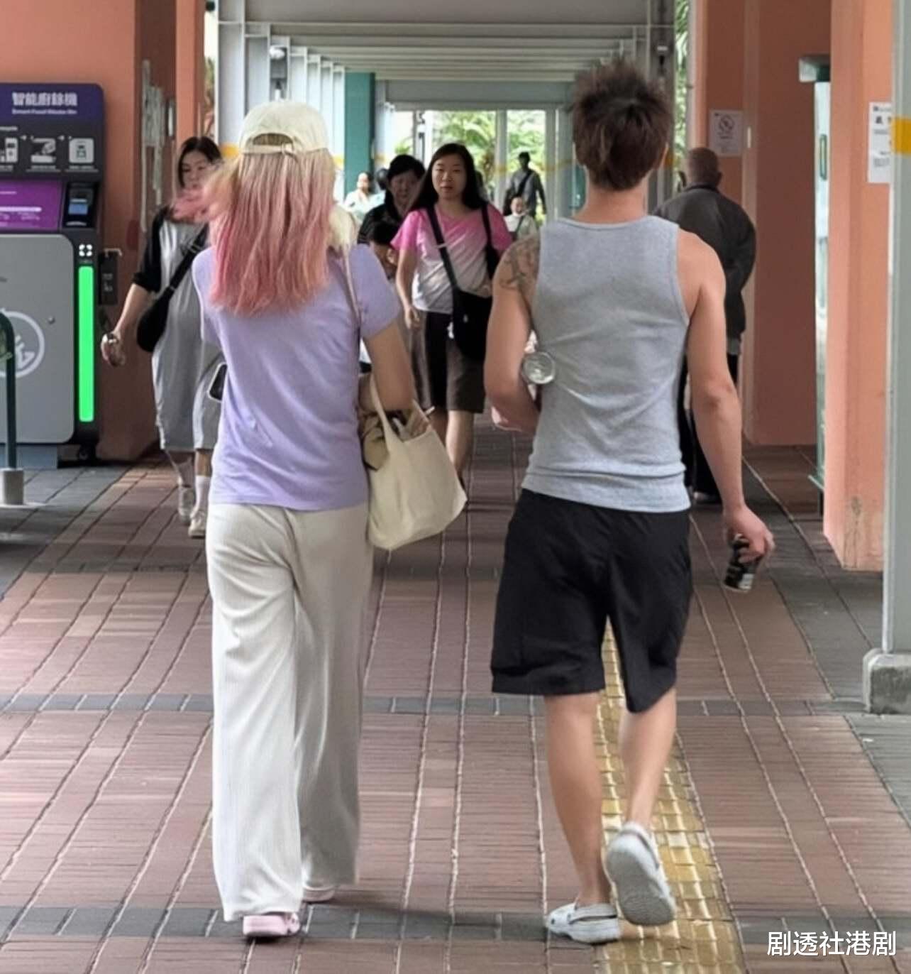 照片中可以看到,周永恒旁边的女子,染了一头粉色的头发,走在人群中可谓相当打抢眼。