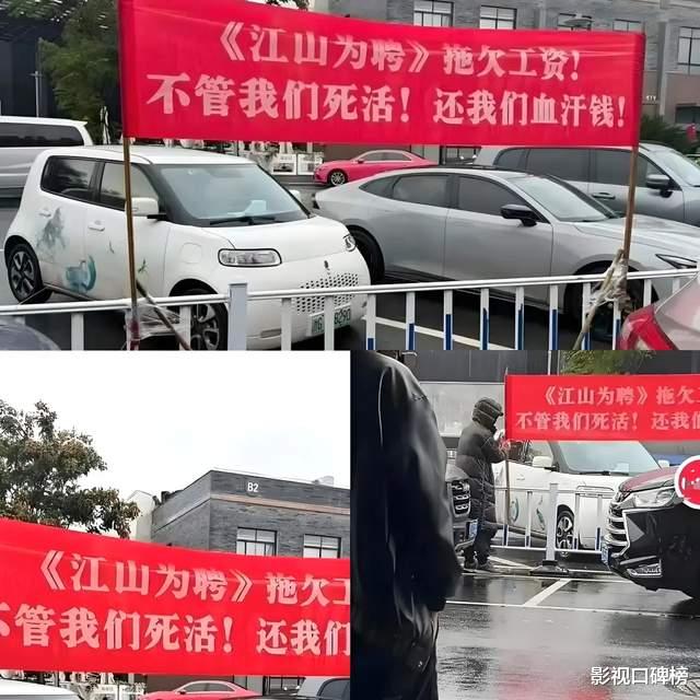 11月12日,自称是《江山为聘》剧组群演及供职于剧组基层的若干人员在浙江片场拉横幅维权,意在讨要拖欠未发的工资。只见横幅上显示的内容为“《江山为聘》拖欠工资不管我们死活!还我们血汗钱。”现场照片和视频在网上大面积传播,自此关于《江山为聘》剧组的欠薪事件再度发酵,网友们对此看法不一。部分网友很能理解他们的遭遇,同是底层打工人,就靠着上班的三瓜俩枣生存。