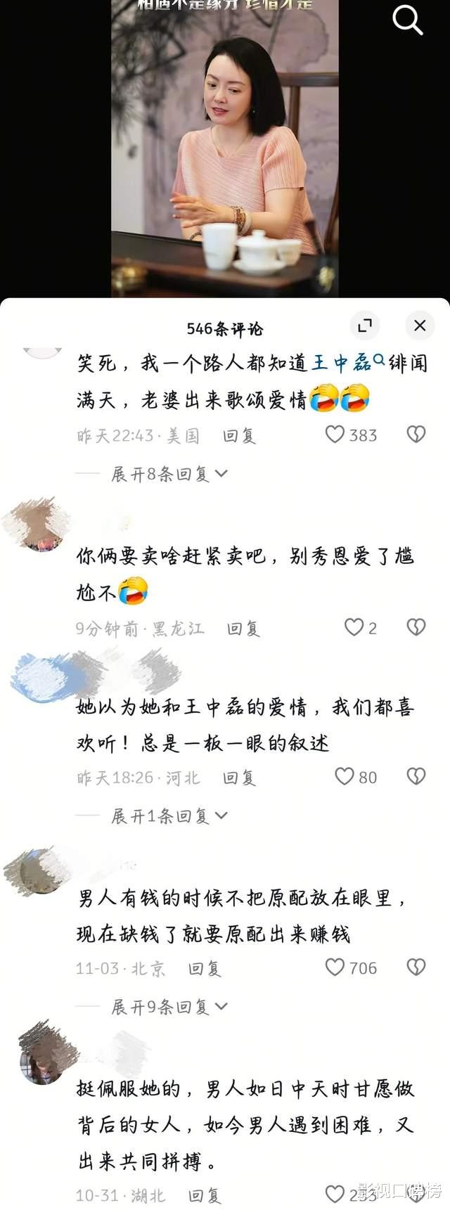 王中磊夫妇在短视频平台的动态很值得玩味,王晓蓉天天分享喝茶种花的悠闲生活,还深情回忆三十年前在机场如何与王中磊一见钟情终成眷属的浪漫故事。两人合力打造了一副恩爱伉俪的美好画面,展示二人携手走过半生。然而,这波操作网友并不买账。很多人直接点破,这是缺钱了,想立人设赚流量,最后让普通老百姓来买单。
