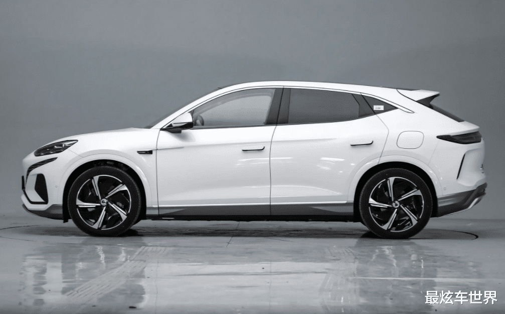 来到车身侧面之后,虽然腾势N7是一台中型SUV,但是可以发现,新车的车身高度压得很低,仅仅只有1602mm,而且再配合上短悬长轴的设计语言以及溜背式的车顶线条,更是进一步的提升了整车的运动气息,同时也被官方称之为猎跑SUV。除此之外,可以发现腾势N7整车的线条设计的非常饱满,而且后叶子板隆起的线条布局,更是给人一种宽体车身的视觉效果,从而增添了几分力量感。