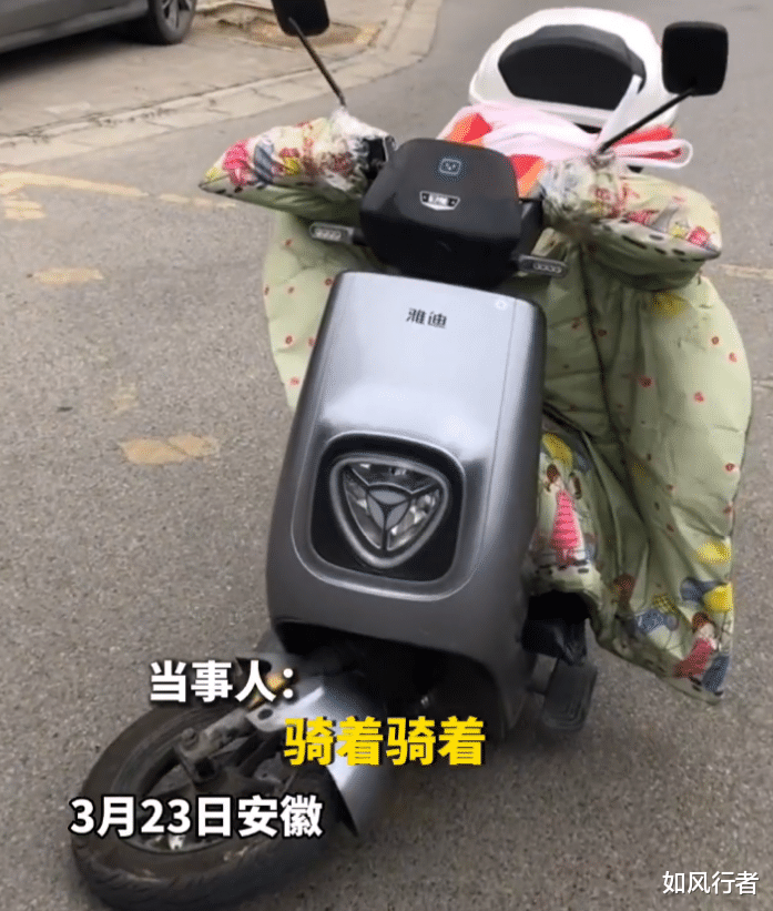 通过视频可以看出,该车主的雅迪电动车车架断裂,使得车头向后弯曲,无法继续行驶。说到车架断裂,大家是否还记得在今年3月23日有网友发布视频,同样是雅迪电动车,在骑行的途中,前轴突然断裂的情况。