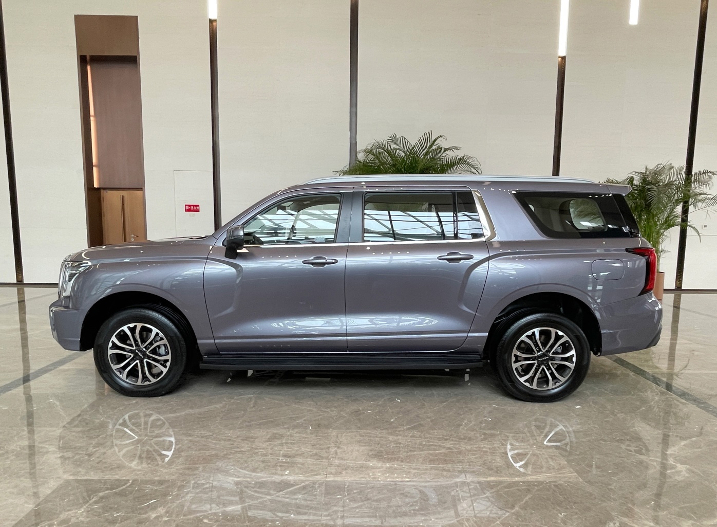 车身部分可以看到十分的厚重,车顶部分不仅非常的平直且修长,而且更是有着细长的行李架来增加新车的越野氛围,下方的车窗采用了全新的分段式造型设计,前方车窗四周整体都有着镀铬饰条包裹提升机精致感,宽厚的C柱还让后方后备厢处的车窗形成了分割造型,形成了明显的分体式造型设计,下方车门部分则是有着隆起明显的腰线设计,圆润的造型结合车门下方内凹式的造型提升了新车的层次感以及肌肉感,前后的叶子板部分更是有着突出的外扩式造型来增加新车的运动定位,车身尺寸方面,新车的长宽高分别为5190*1905*1835mm,轴距达到了3140mm,不仅超越哈弗H9,更超越坦克500,成为长城集团旗下最大的SUV。