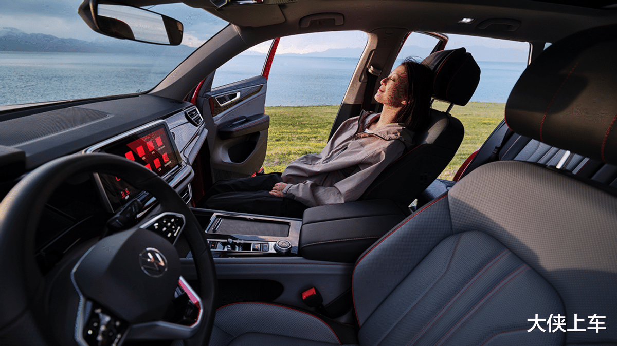 把目光转移到车内,途昂X全系标配由12英寸中控屏幕+10.25英寸全液晶仪表盘组成的科技配置,配合上采用红色缝线、红色装饰条进行撞色点缀的方向盘、内饰和座椅,整车内饰给人呈现出的视觉冲击感,不仅会让人走进去后充满了激情,同时还极具科技感,这些很多全尺寸SUV呈现出的油腻感形成了极大的反差,变得更符合年轻人的审美口味。