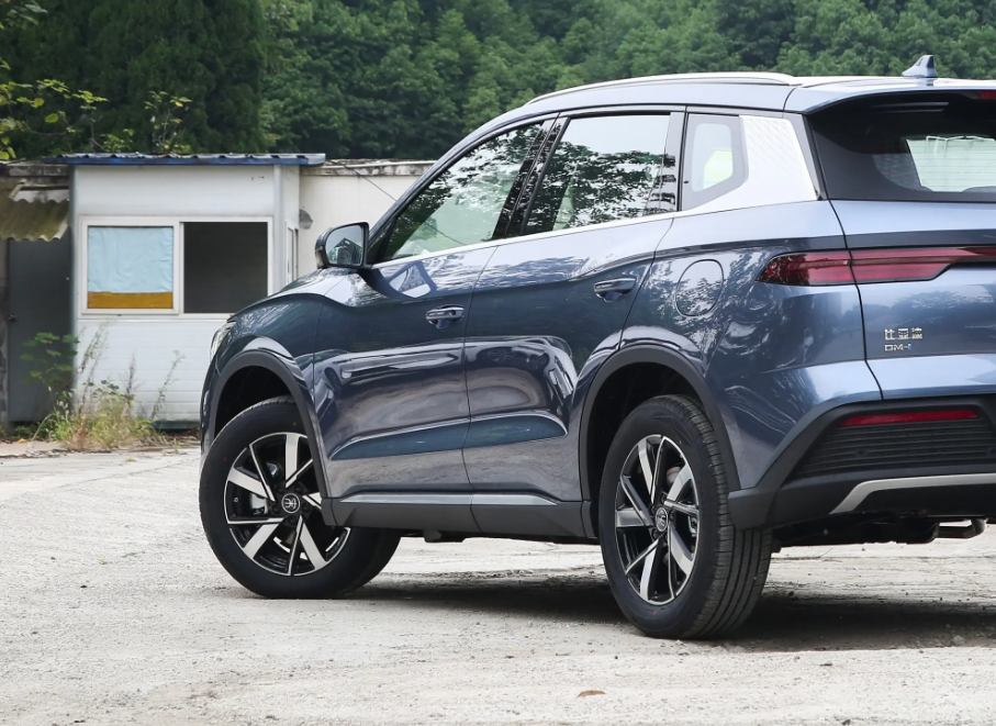 车身侧面设计基本保持不变,但是在后视镜上增加了NFC功能。比亚迪表示,此次增加了苹果手机的NFC支持,进一步扩大了适用用户群体。同时,新车推出了一种被称为“远山青”的新车色,带有一点蓝色的感觉,并将轮毂尺寸升级到了19英寸。车辆尾部更加简洁,取消了贯穿式尾灯中间的镀铬饰条,采用了几根平行线条。比亚迪甚至不惜成本地重新设计了整个尾门,使其更大、开门面积更大。牌照框也从尾门中间移到下保险杠中间,采用了与车身不同颜色的设计,类似于赛车的巨大扩散器的感觉。