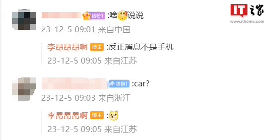 有网友询问能否展开说说,该博主回复称“反正消息不是手机”。此外,还有网友询问是否为汽车,该博主回复了狗头表情包,给广大网友留下了广阔的想象空间。