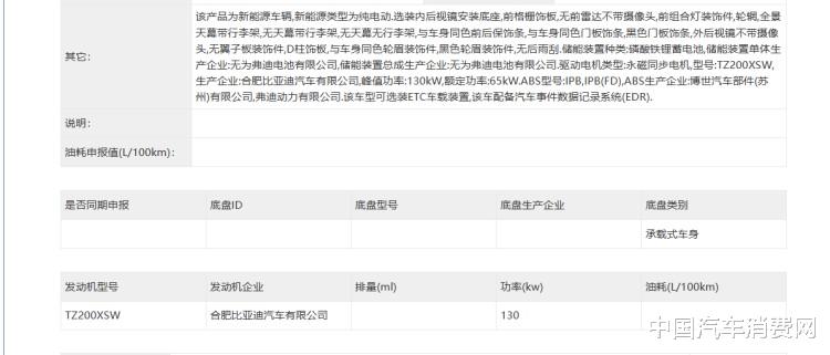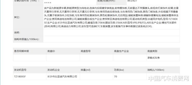 元家族都是纯电车型,元UP也是如此。根据申报信息,元UP有两种动力,低功率版车型搭载长沙比亚迪生产的TZ180XSF型电机,最大功率70kw,磷酸铁锂蓄电池,生产企业为贵阳弗迪电池有限公司和无为弗迪电池有限公司。
